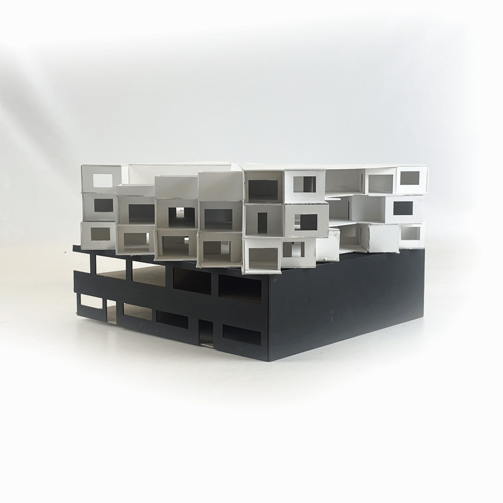 Meteora explores modular overbuild as an adaptive strategy for dense urban environments. The project investigates how lightweight prefabricated units can be assembled over existing structures, creating new vertical communities without expanding the ground footprint. Through a system of interlocking modules and connective cores, Meteora envisions housing as a flexible, reversible architecture—one that grows, contracts, and reorganizes in response to urban and social needs.